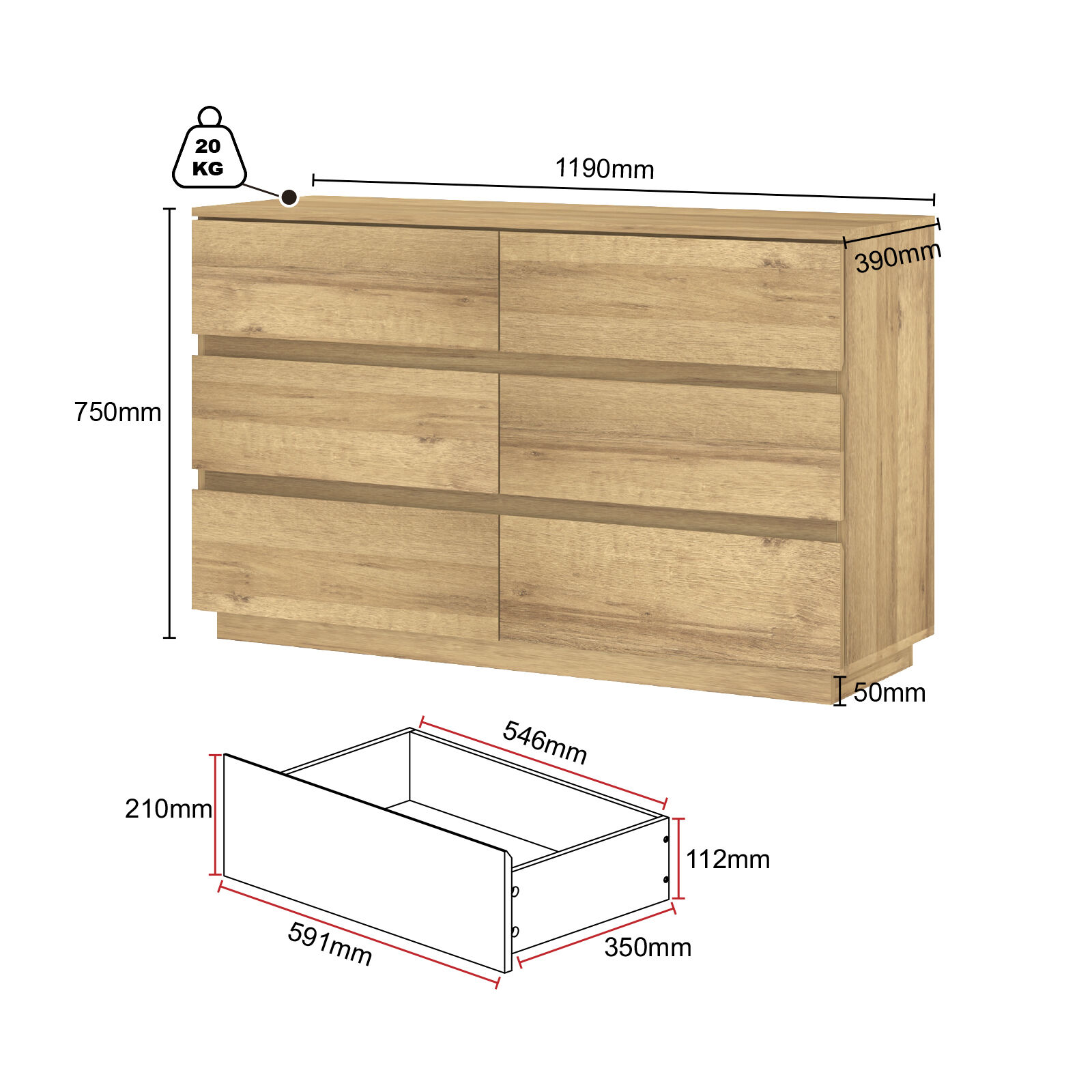 • Internal Drawer Strength: Each individual drawer is built to hold up to 10kg, providing robust storage for your belongings.