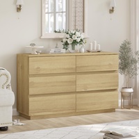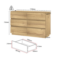 6 Drawer Chest of Drawers Lowboy Dresser Storage Cabinet Bedroom Oak