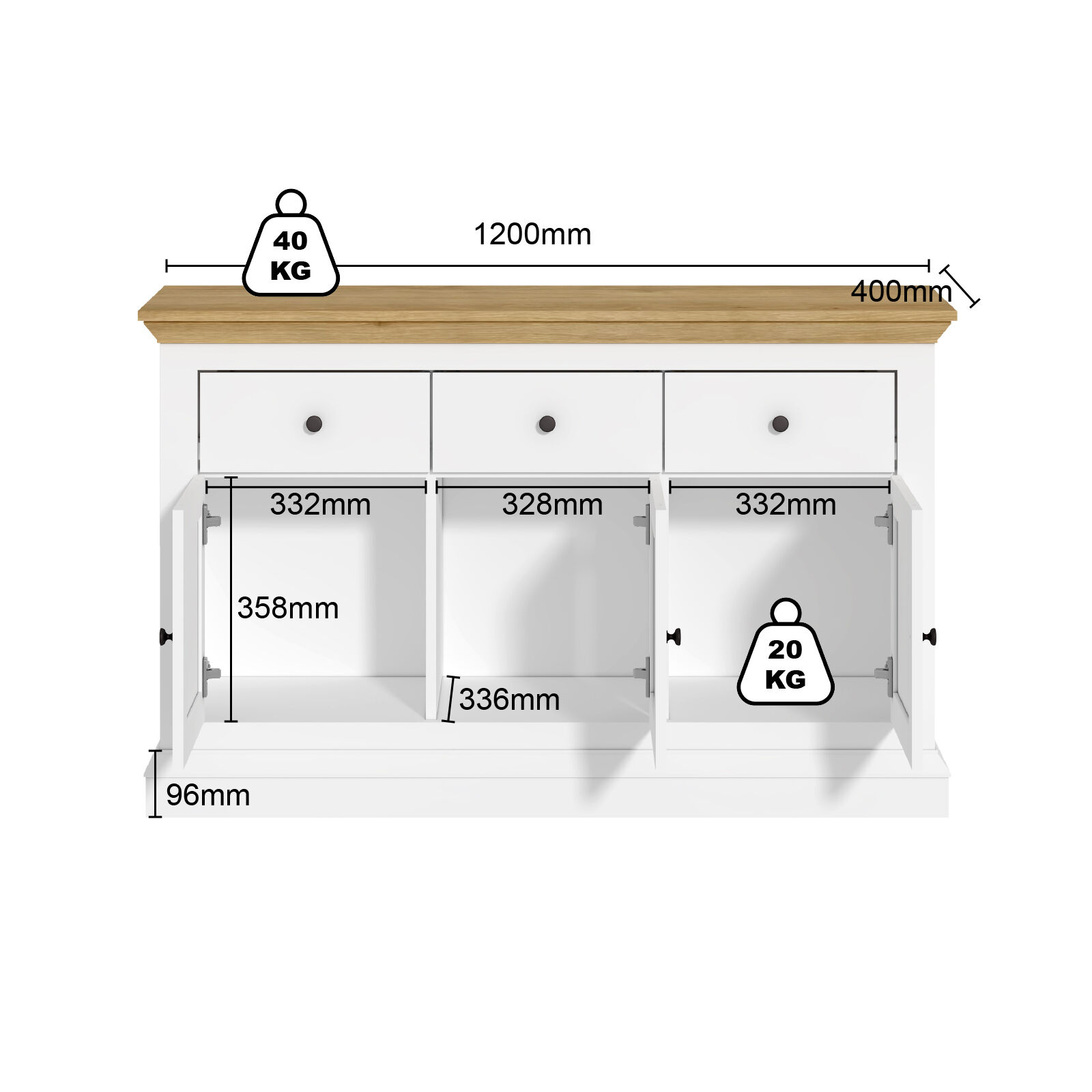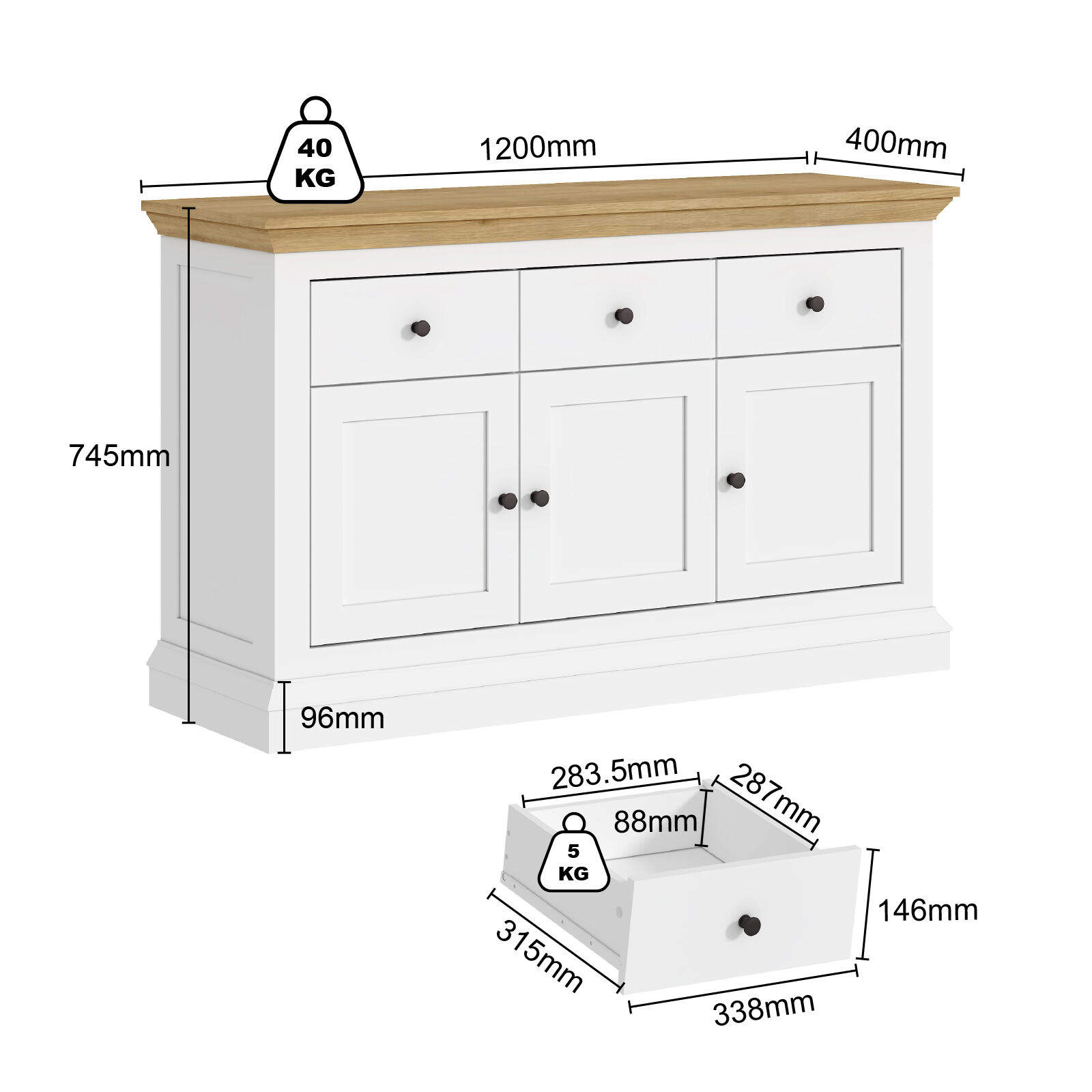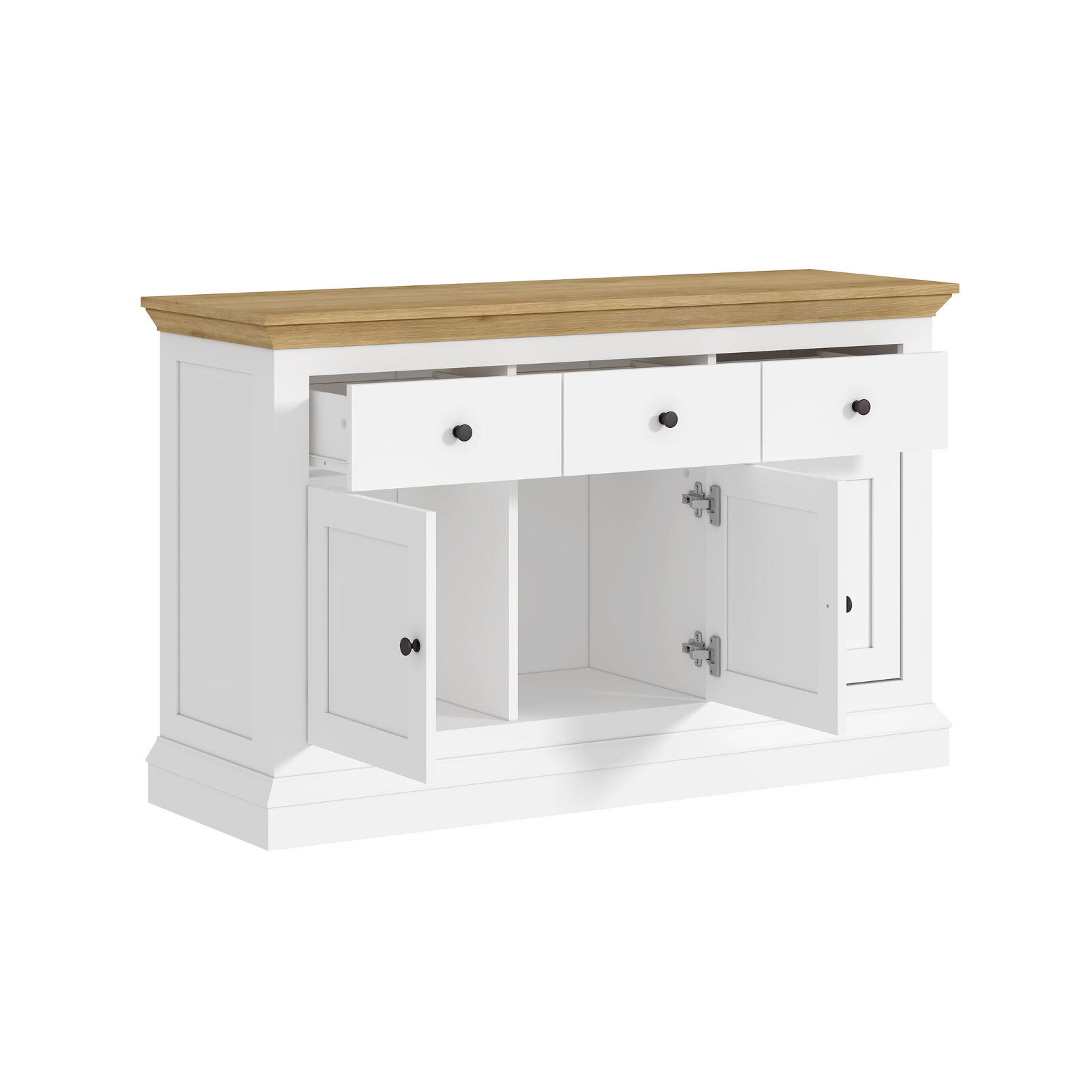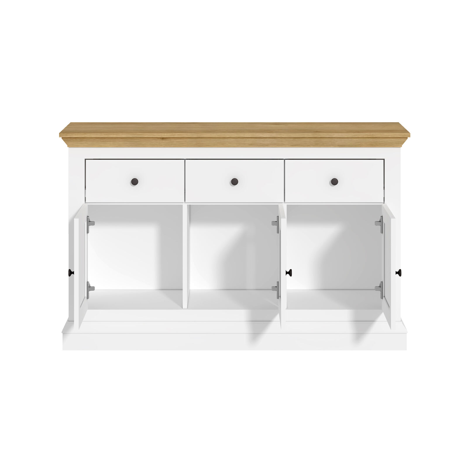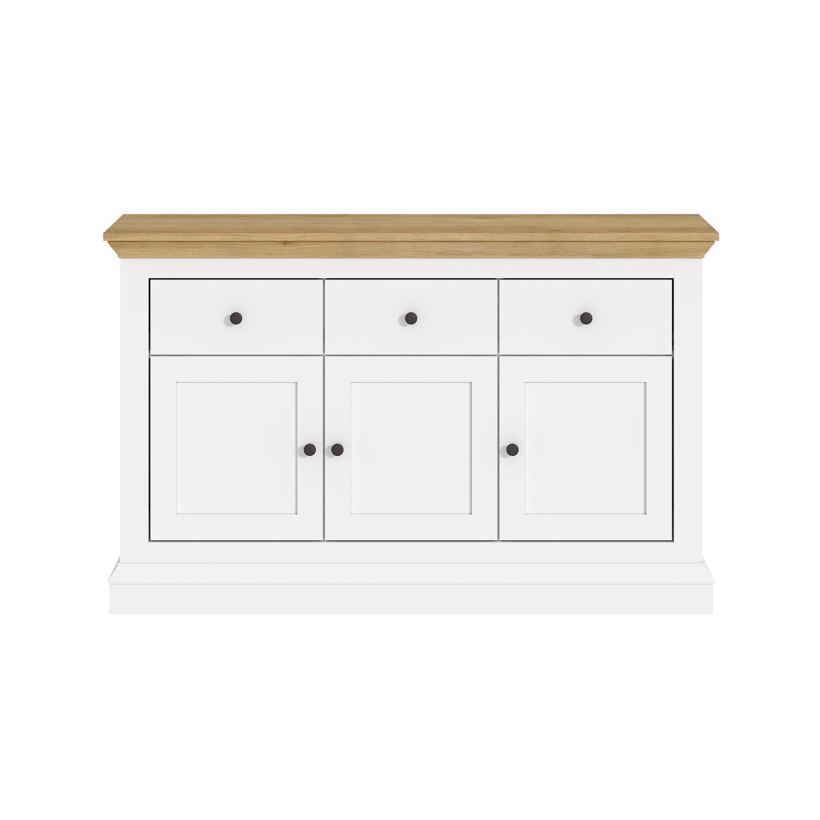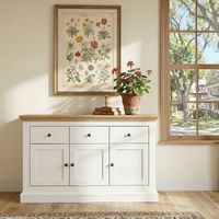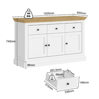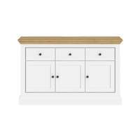 White & Timber Sideboard | 3 Drawer 3 Door Hamptons Buffet