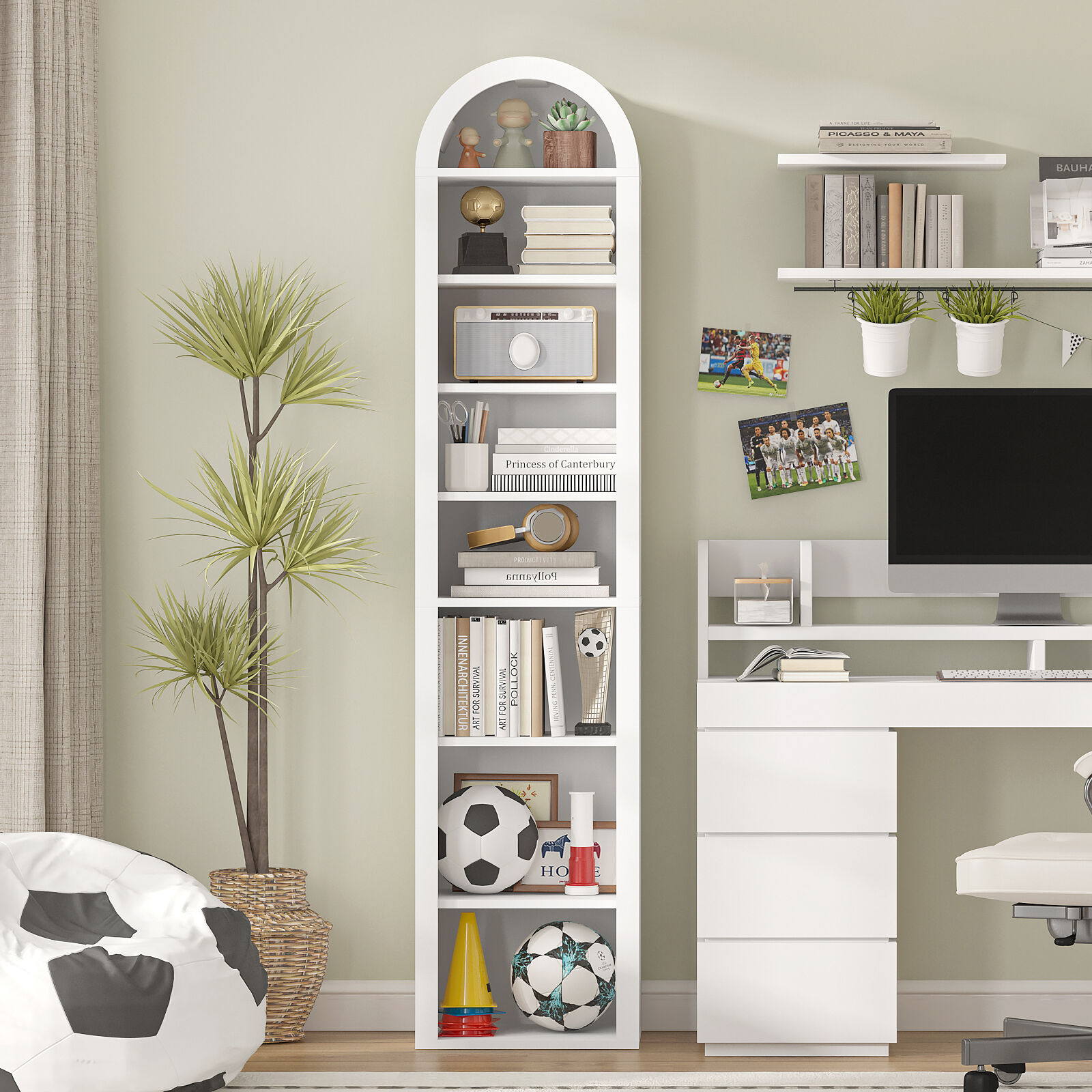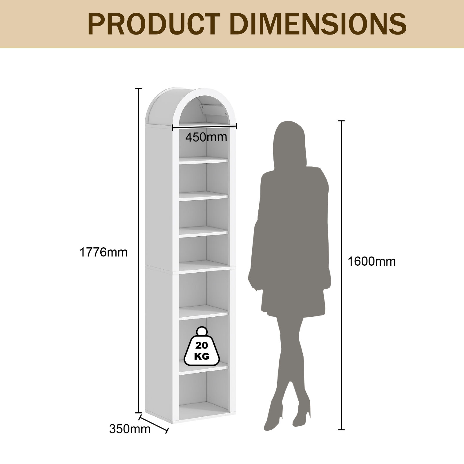 Opera Slim Arch Bookshelf Bookcase Display Cabinet 8-Tier Storage Stand Rack White