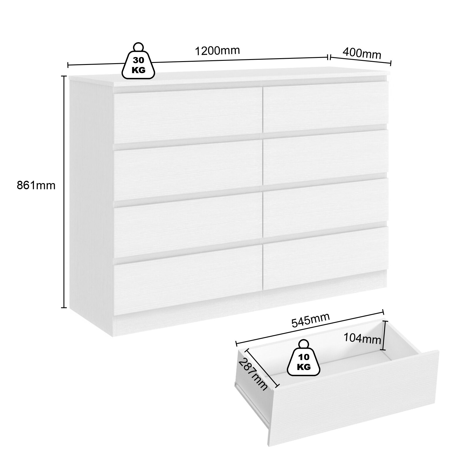 • 8 Chest of Drawers Assemble Size: Length 120cm x Width 40cm x Height 86.1cm.