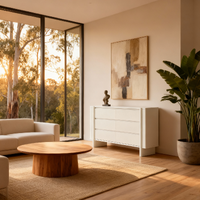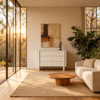 Departing from the traditional floor-standing style, the chest of drawers is lifted by two block-shaped bases at the bottom—this thoughtful detail not only makes daily cleaning more convenient by keeping the chest of drawers away from direct contact with the floor but also adds a touch of lightness to the chest of drawers’s structure, avoiding the dull and heavy feel that often comes with conventional chests of drawers