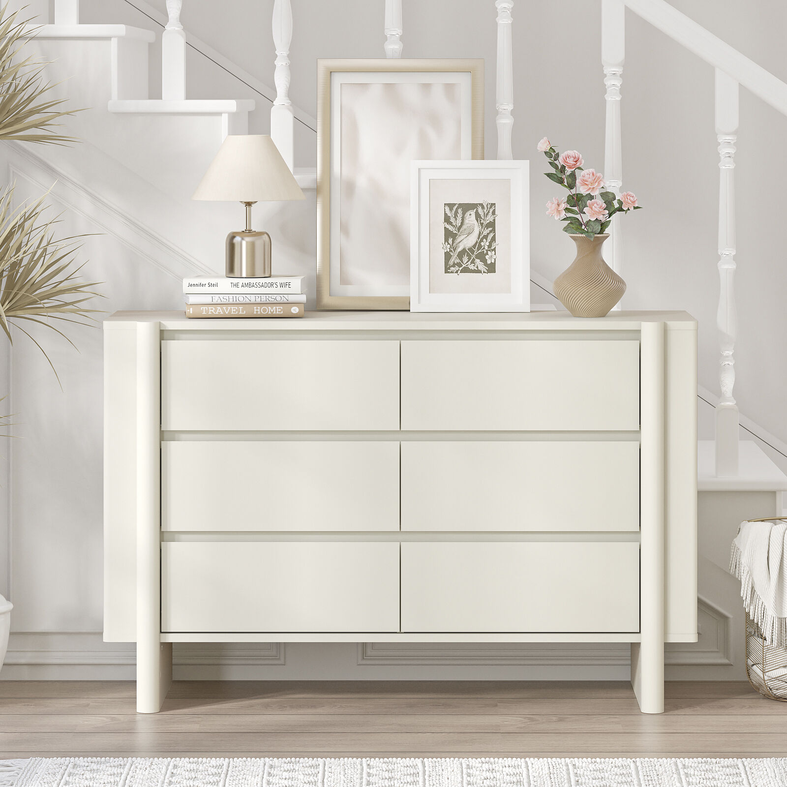 • Style & Vibe: Modern minimalist chest of drawers in light white, with neat smooth lines, clean and sophisticated, fitting various home decors.