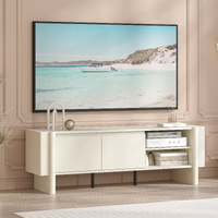 This standout among tv units features a practical mixed storage design: two cabinet doors on the left offer concealed space for storing items like media devices or remote controls, while the right side is an open storage area equipped with one adjustable shelf—perfect for displaying decor or placing frequently used electronics. The back panel of the shelf is designed with circular holes, which facilitate easy cable management to keep wires neat and organized—a key practical detail for functional tv units. The surface of this TV stand (a must-have for well-designed tv units) boasts a refined finish, adding a subtle sense of quality to its overall look while balancing functional storage with aesthetic charm, a hallmark of top-tier tv units.