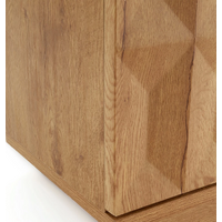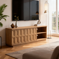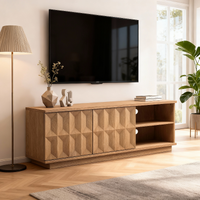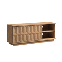 This tv entertainment unit features a rich, natural wood aesthetic with a sleek, modern design. With its warm oak-tone finish and geometric 3D-patterned cabinet doors, this tv entertainment unit brings a sophisticated, eye-catching vibe to any living space while serving as a functional hub for your home entertainment setup. It is crafted with a detailed wood-grain surface, where the textured diamond-shaped paneling on the cabinet doors adds a bold, artistic touch that balances modern sleekness with distinctive character.