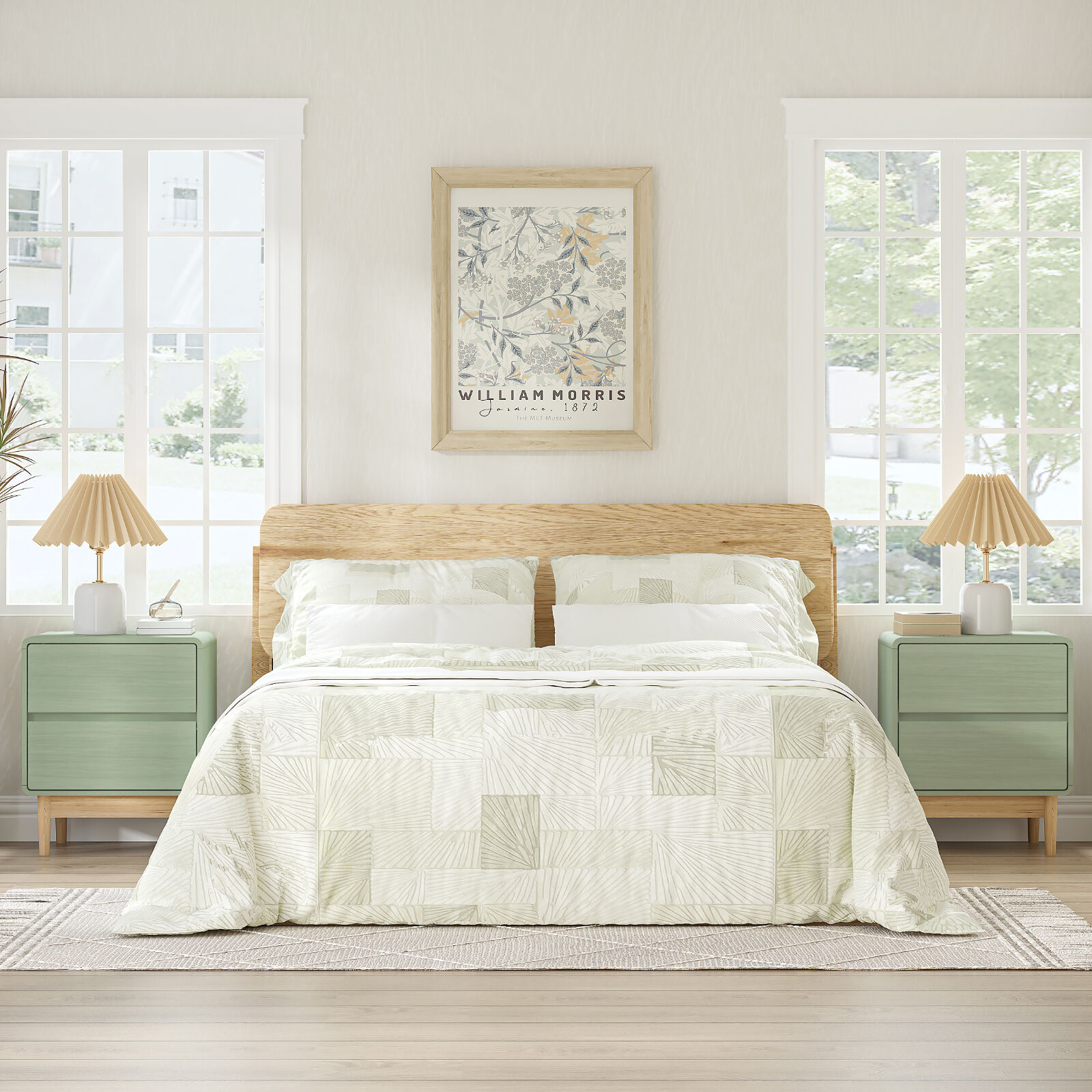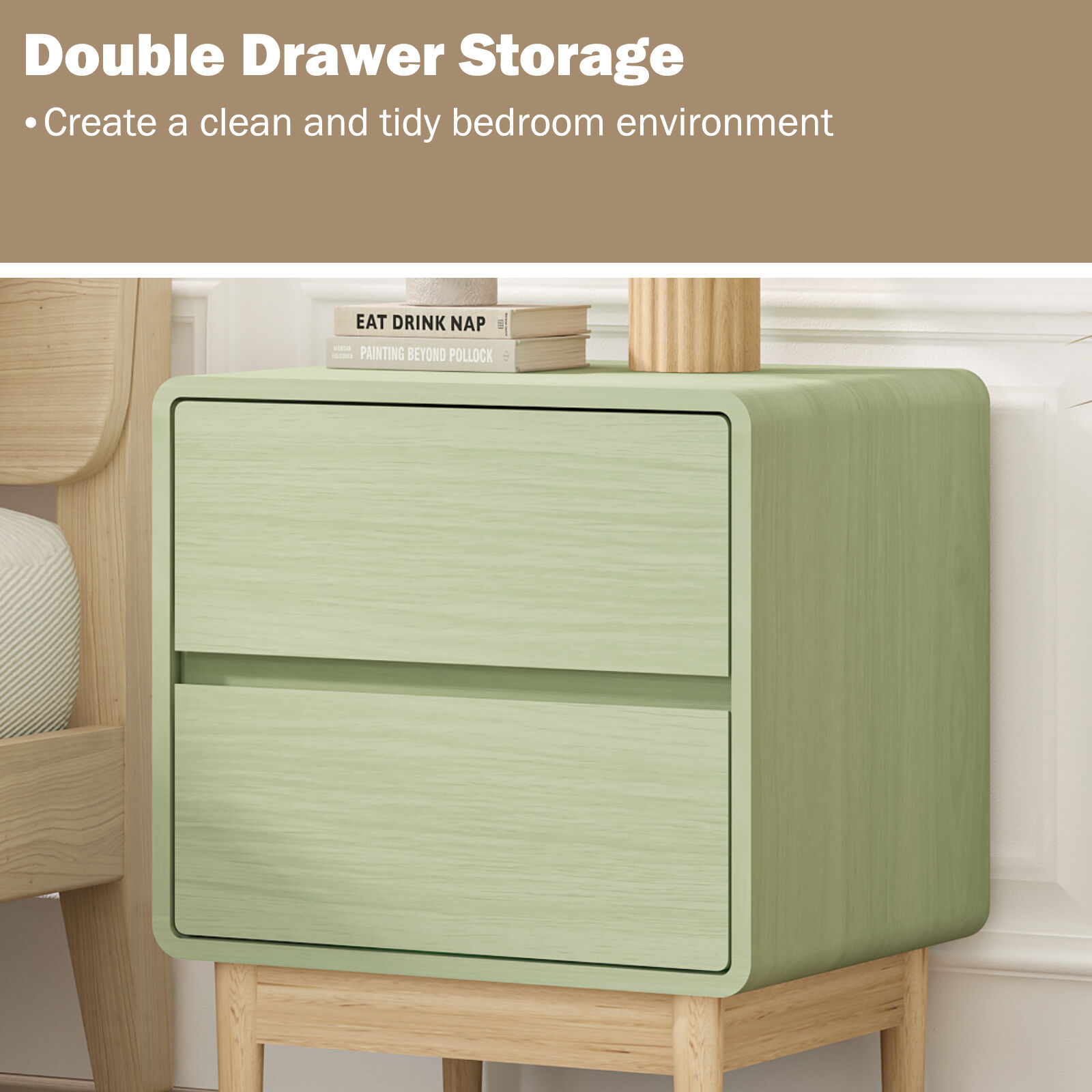 • Versatile Adaptive Design:Minimalist style with clean lines and soft light green finish blends seamlessly with various bedroom decor schemes.