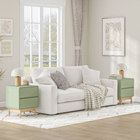 This set of two bedside tables is an outstanding addition to any bedroom, boasting remarkable design and practicality. Adopting a minimalist and straightforward style, these bedside tables are highly adaptable, seamlessly complementing a diverse range of bedroom decors. Crafted with light green foil-laminated surfaces, this pair of essential bedside tables features a versatile aesthetic that effortlessly integrates into any bedroom decor scheme.