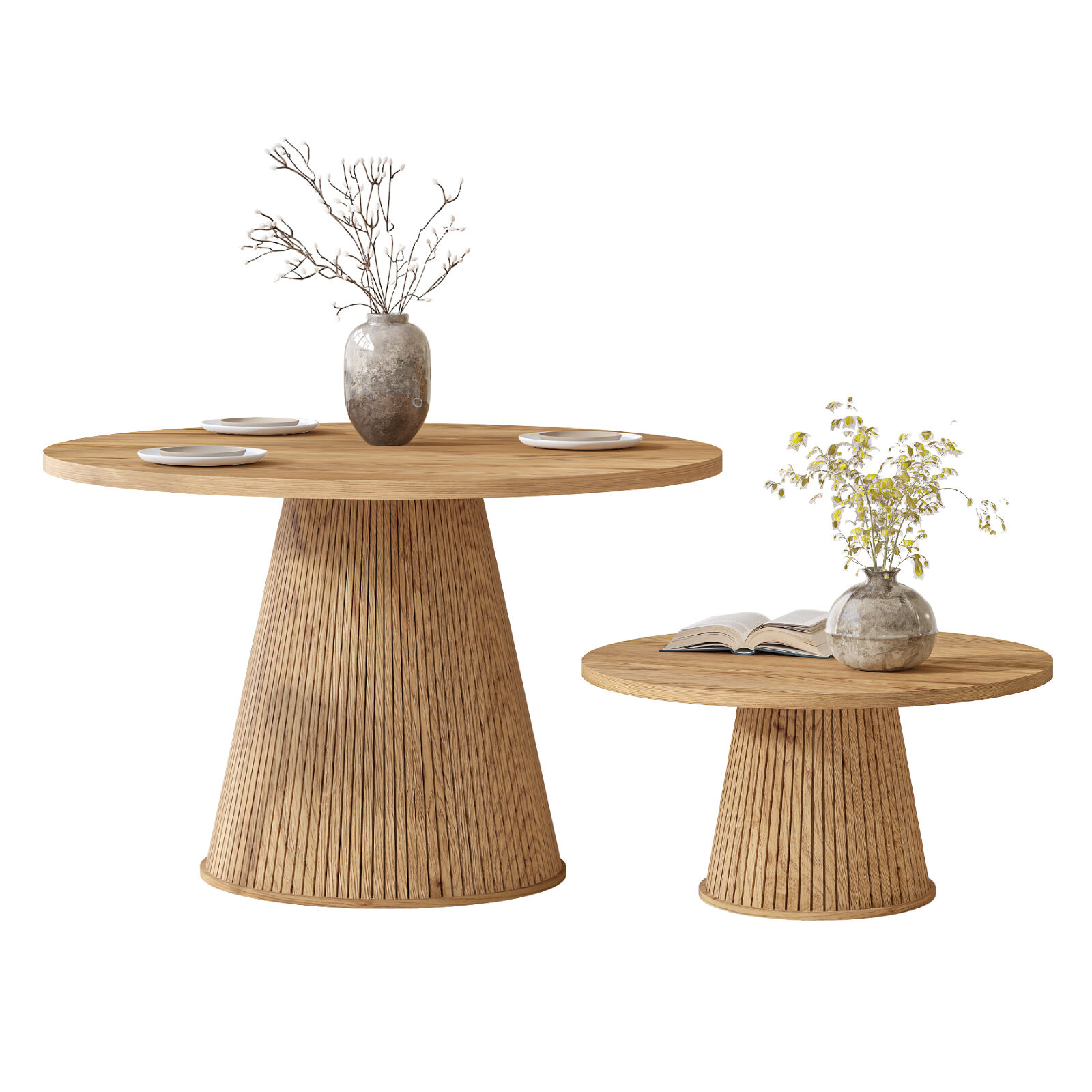 • Dining table (120cm diameter/75cm height): same grooved base, ideal for gatherings