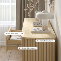 Upgrade your bedroom with the stylish and functional 2-Drawer Chest of Drawers Dresser (Set of 2). This paired set of 2-drawer dressers—each a compact yet practical chest of drawers—adds a touch of modernity to your interior while helping to sort and organize your clothing, accessories, or small essentials. What makes this chest of drawers set even more special are its unique designs: on both sides of each cabinet in the chest of drawers, it features the Fluted Tambour Panel design, which not only enhances the aesthetic appeal but also gives a sense of elegance and sophistication. The handles of each chest of drawers adopt a Rust-proof iron handle design, ensuring durability and a sleek look that can withstand the test of time and daily use. Moreover, the top surface of each chest of drawers boasts a Curved shape design, adding a smooth and flowing visual effect—turning this chest of drawers set into a charming focal point in your bedroom.