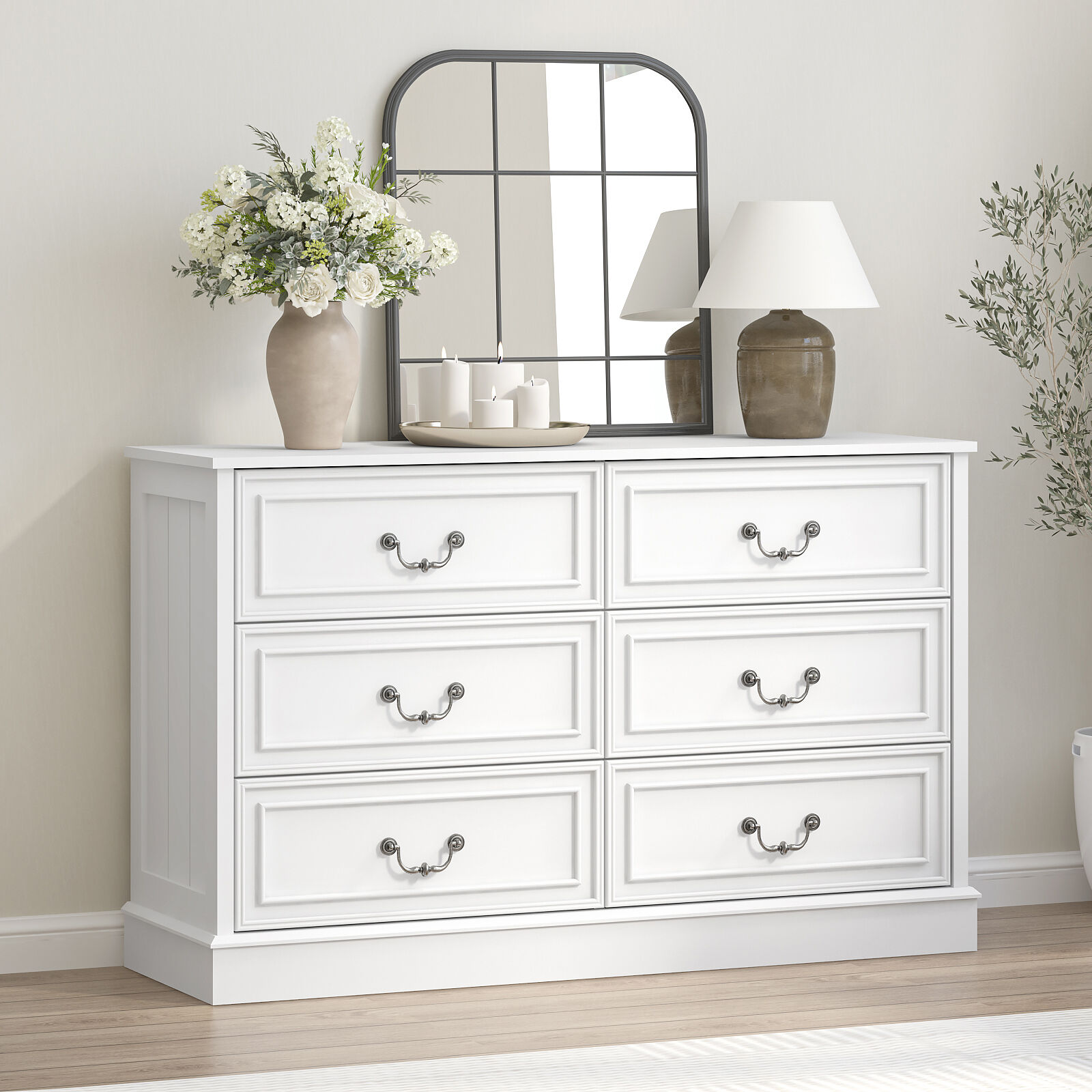 This white chest of drawers dresser, a practical and elegant piece, is a fantastic addition to any home space. It embodies a timeless charm with a dominant white color palette, featuring a design that balances simplicity and grandeur—making it highly versatile and suitable for a variety of home decor styles. Crafted with attention to both appearance and practicality, this essential chest of drawers dresser can seamlessly blend into different living spaces, whether your room leans toward modern, traditional, or eclectic tastes.​