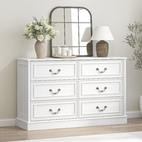 HAMPTON 6 Drawer Chest of Drawers Vintage Lowboy Dresser Storage Cabinet Bedroom White