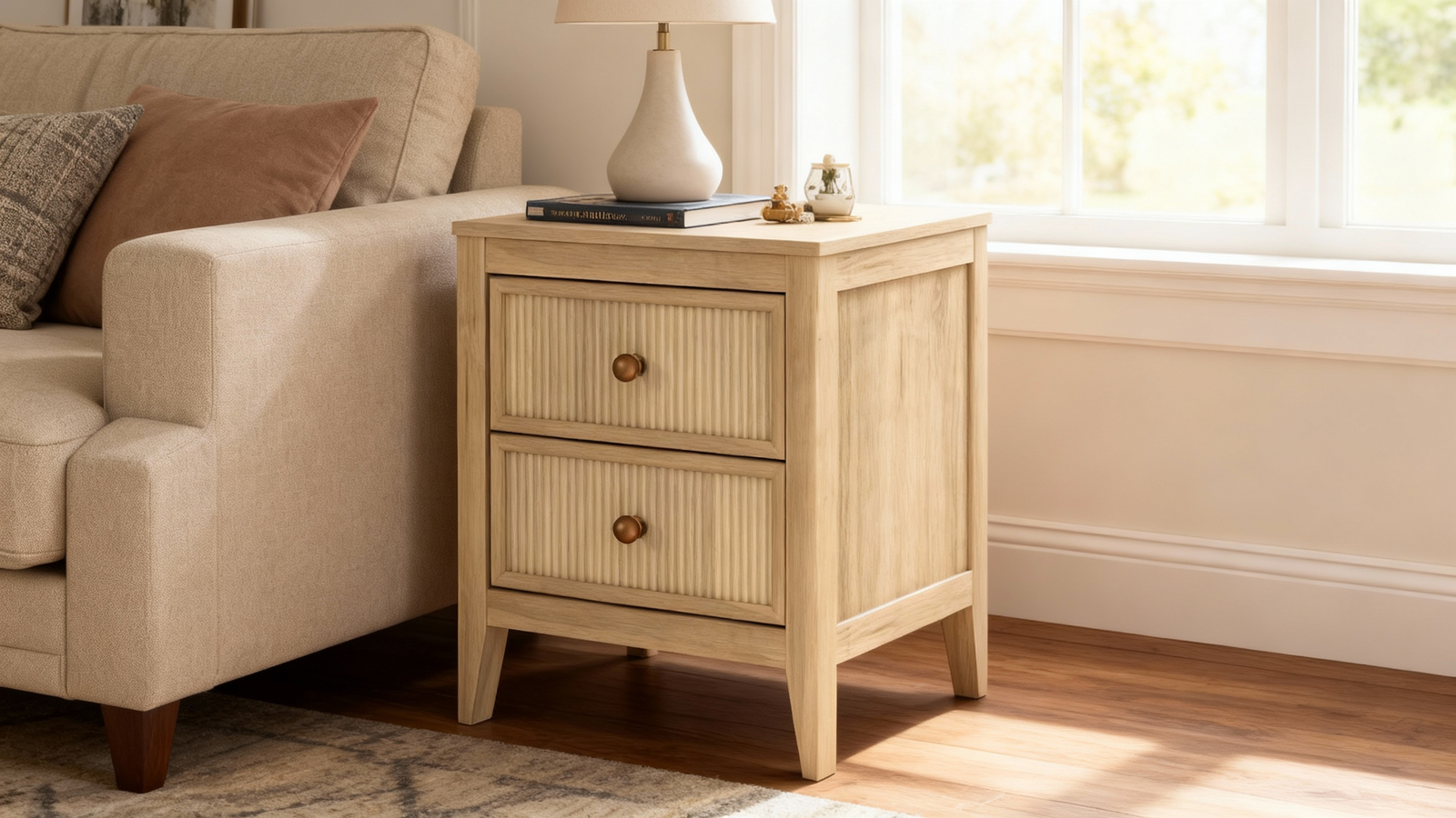 Fluted Bedside Table | 2 Drawer Dresser Modern Nightstand