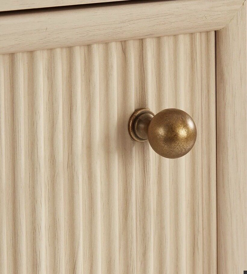 • Elegant Textured Design:Vertical ribbed (fluted) drawer panels + brass knobs add subtle, tactile charm and visual interest to the piece.