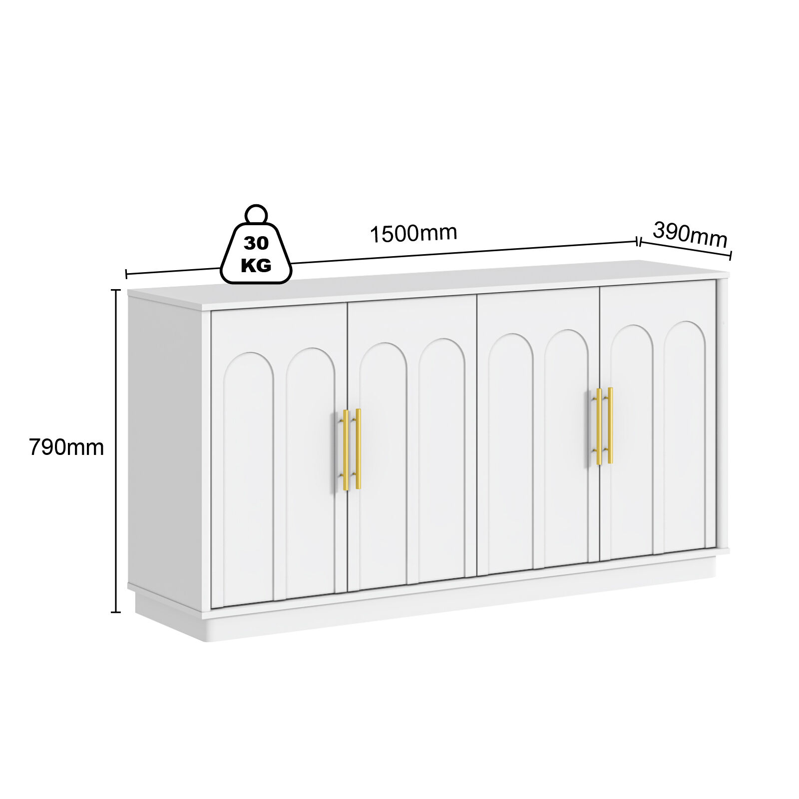 Opera 4 Door Buffet Sideboard Cabinet 150cm White Cupboard | Spacious and Stylish Storage Solution